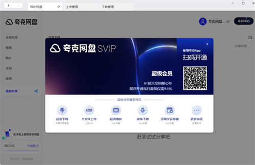 夸克网盘PC版免费使用方案是为用户提供高效云端存储的专业工具,其智能备份功能可帮助用户将重要文档实时同步至云端,确保数据永不丢失。软件内置文档在线编辑模块,支持跨设备学习与办公场景,搭配灵活的文件共享系统,用户...
