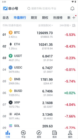 1、覆盖全球主流数字货币,支持快速检索2000+币种实时行情