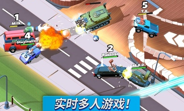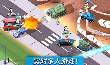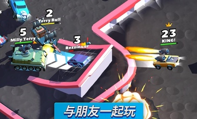 疯狂撞车王全车辆解锁汉化版是一款采用动画美术风格打造的多人对战游戏。玩家将化身赛场战士,通过操控武装载具在地图中展开激烈碰撞。数十种增益道具随机刷新,从加速引擎到远程火炮应有尽有,合理搭配装备可大幅提升战场统治力。