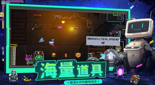 经典像素艺术与现代玩法完美融合,平台跳跃与射击要素的有机结合创造独特操作手感。玩家可收集超过20种功能各异的战术装置,从提升移动效率的喷射背包到增强作战能力的电磁护盾,每种装备都将改变闯关策略。