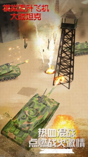 2、智能AI坦克集群展现真实作战阵型,需运用俯冲轰炸与高空侦察等战术