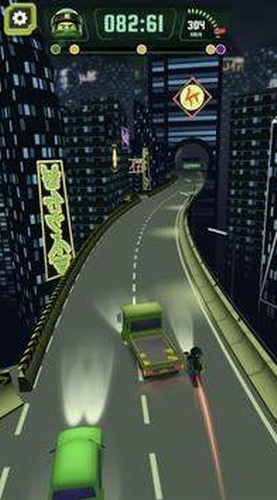 游戏设置多梯度难度赛道,从基础训练场到高空悬浮赛道,每个场景都配备动态障碍系统。玩家需在加速冲刺的同时预判弯道角度,通过长按漂移键实现贴地过弯,车身倾斜角度越大越能保持高速状态。独创的武器道具系统让竞速充满变数——拾取赛道随机刷新的手里剑可干扰前方对手,而护盾生成器则能抵御三次攻击。