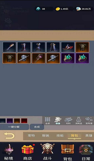 3. 装备锻造系统支持百种组合方案,通过击败精英怪获取稀有材料打造个性化神兵
