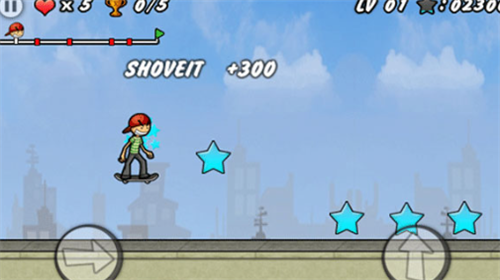 1、独创的连击评分系统,连续完成特技可触发金币加倍效果