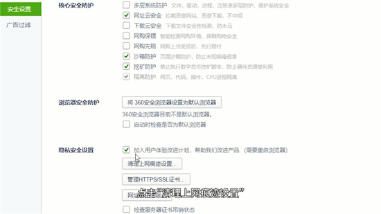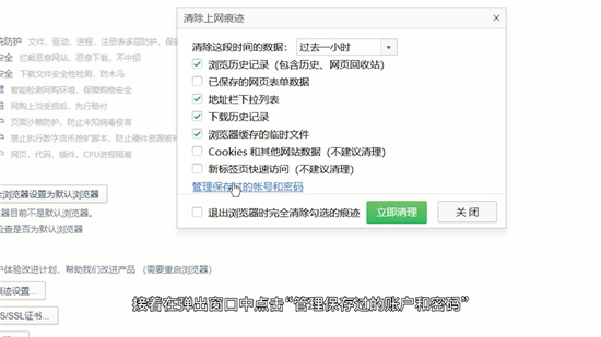 3. 切换至「安全设置」标签页,此处集中管理浏览器的防护体系。向下滚动至「隐私安全」子模块,可发现「清理上网痕迹设置」选项。该功能不仅涉及缓存管理,更是密码存储系统的控制中枢。