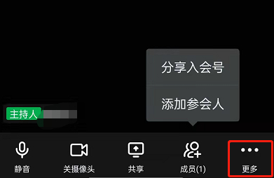 2、进入会议界面后,在右下角功能区定位「更多」选项(三个点图标)。此处集成多项会议增强功能,包括画面调节、声音设置等核心配置项。