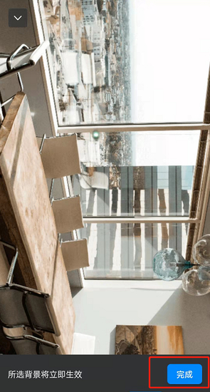 5、确认背景效果后,点击「完成」保存设置。此时参会者视角将自动替换为选定背景,建议调整坐姿保持上半身入镜,如需临时关闭可通过悬浮菜单快速切换。