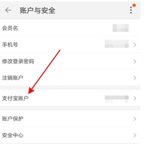 3、进入账户安全中心后,选择"支付宝账户"功能单元,此处展示当前绑定的支付宝账户信息
