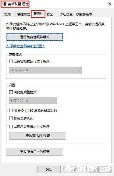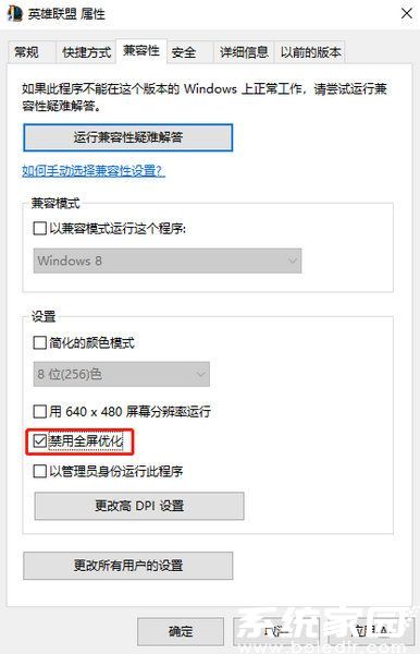 3. 兼容性选项卡中的功能选项需结合具体硬件配置调整。除勾选禁用全屏优化外,对于使用多显示器系统的用户,建议同步禁用高DPI缩放设置