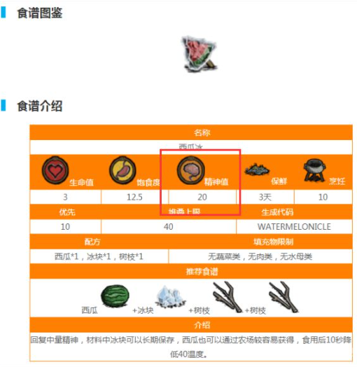 这款夏季特供食品由西瓜与冰块混合制成,每份可补充12.5点饱食度的同时带来20点精神值提升。其3点生命恢复特性使其成为炎热季节兼顾生存与精神管理的优选方案,制作时需注意保持食材新鲜度。