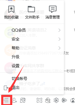 1、启动QQ客户端并完成登录后,定位到主界面左下角的菜单按钮(三条横线标识)。点击该按钮后会展开扩展菜单,这里集合了客户端的各项设置功能。