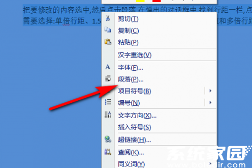 2、在选定文本区域点击鼠标右键,从上下文菜单中选择「段落」选项。此操作也可通过顶部菜单栏的「开始」选项卡实现,定位到段落功能组后单击右下角扩展按钮