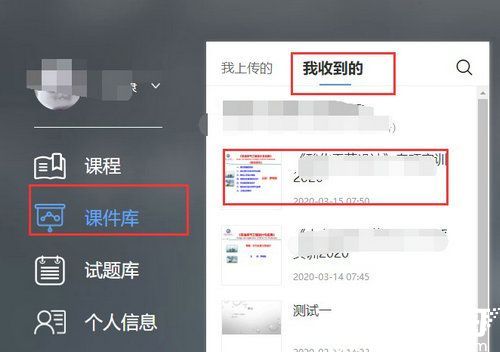 3、进入个人工作台后,左侧功能栏定位"课件库"模块。该区域按照课程分类归档教学资料,可通过时间筛选或关键词检索快速定位目标课件。