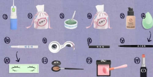 5、睫毛处理要点:选取分段式假睫毛进行黏贴,先固定眼中段再调整眼尾方向。使用睫毛卷烫器时注意温度控制在60℃以下,避免损伤材质。