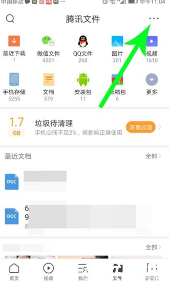 2、进入腾讯文件管理界面后,注意右上角的三点扩展菜单标识(位置详见配图)。这个设计精巧的功能拓展区集合了多项高级设置选项,用户可通过此处进行深度功能配置。