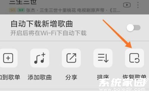4、完成删除操作后,点击右上角「关闭」按钮退出管理界面。此时需再次点击右上角的扩展菜单图标(三个竖点),在展开的功能列表中选择「恢复歌单」选项。
