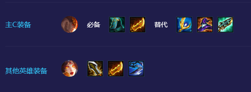 主C乌鸦必备水银(负极斗篷+拳套)保障输出环境,鬼索的狂暴之刃(反曲弓+无用大棒)解决攻速需求。第三件装备推荐大天使之杖(女神之泪+无用大棒)强化持续作战能力,也可视战局选择灭世者之帽或科技枪提升爆发/续航。